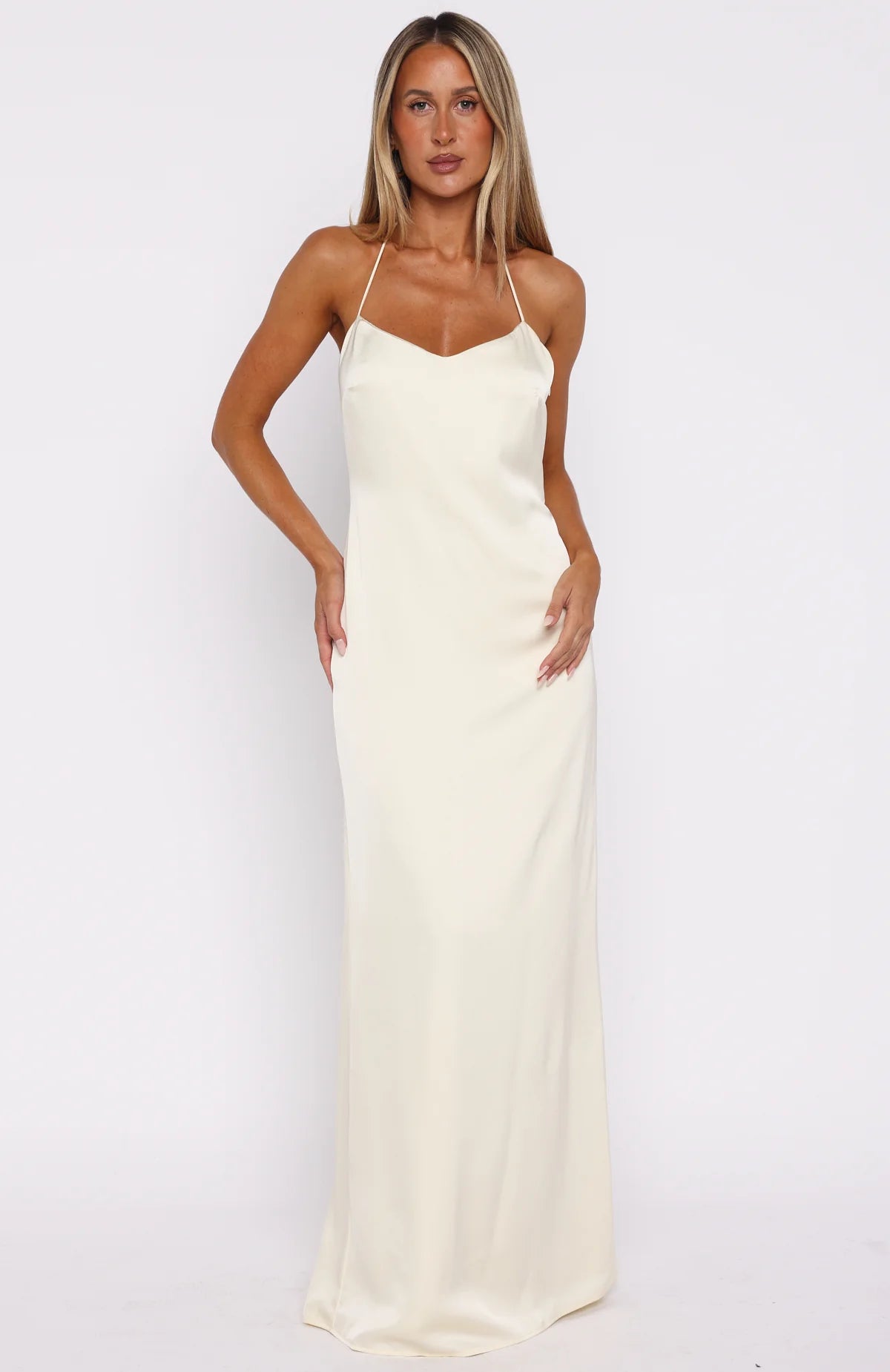 We have fallen in love with the Amore Maxi Dress in Lemon! This captivating piece features delicate spaghetti straps adorned with silver beading, a flattering scoop neckline, and a low back design that exudes elegance. The silky fabrication drapes beautifully, while the full-length, fully lined silhouette ensures comfort. Perfect for evening soirées or special occasions, this dress pair effortlessly with heels and a statement bag.