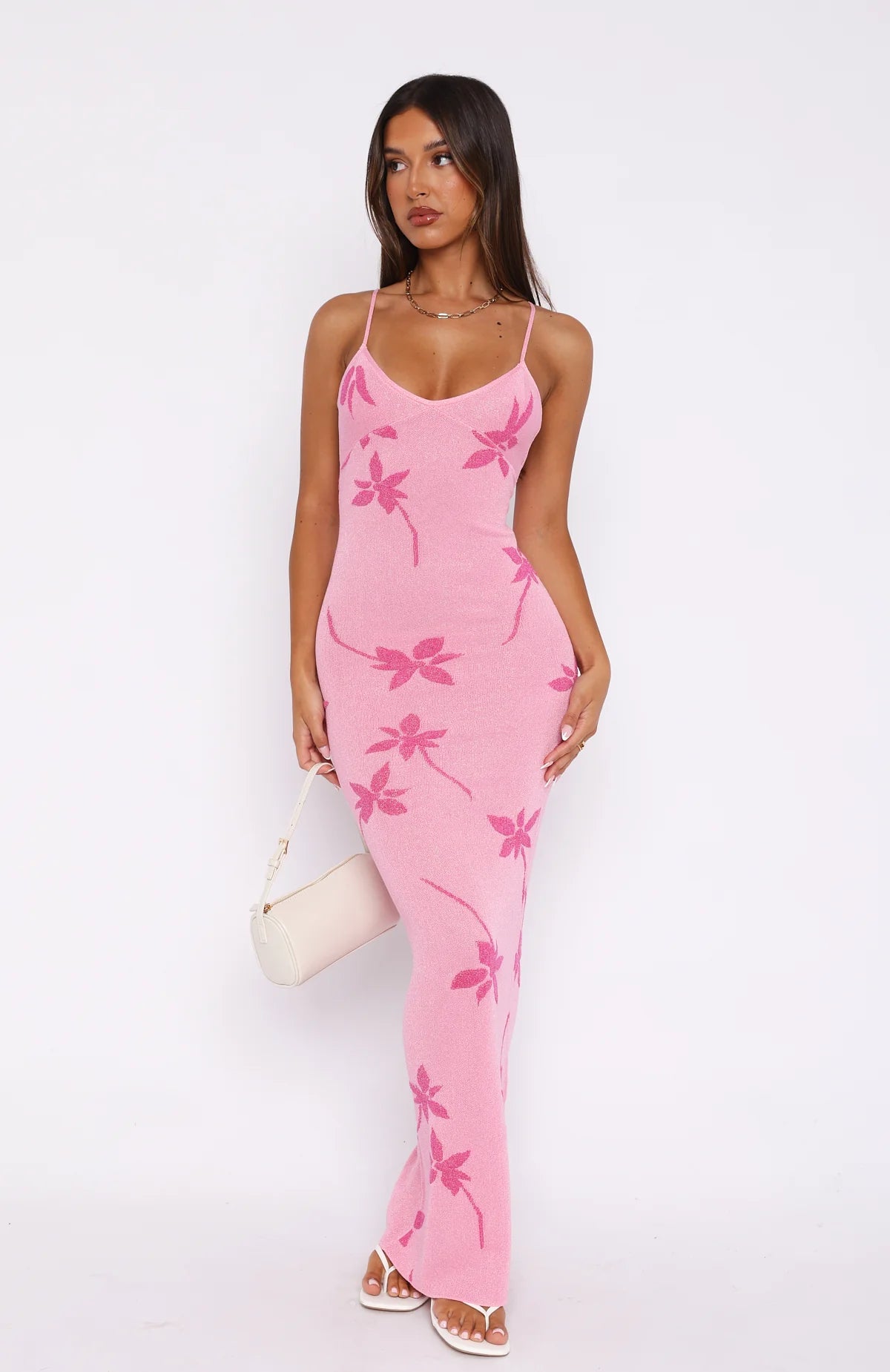 The perfect summer slip dress that does all the talking, fits in all the right places and as comfortable as ever! The Trust Issues Maxi Dress Pink features thin, adjustable straps, low back design and unlined, gorgeous knit fabric. Complete the look with clear mules and gold accessories for a look that we love!